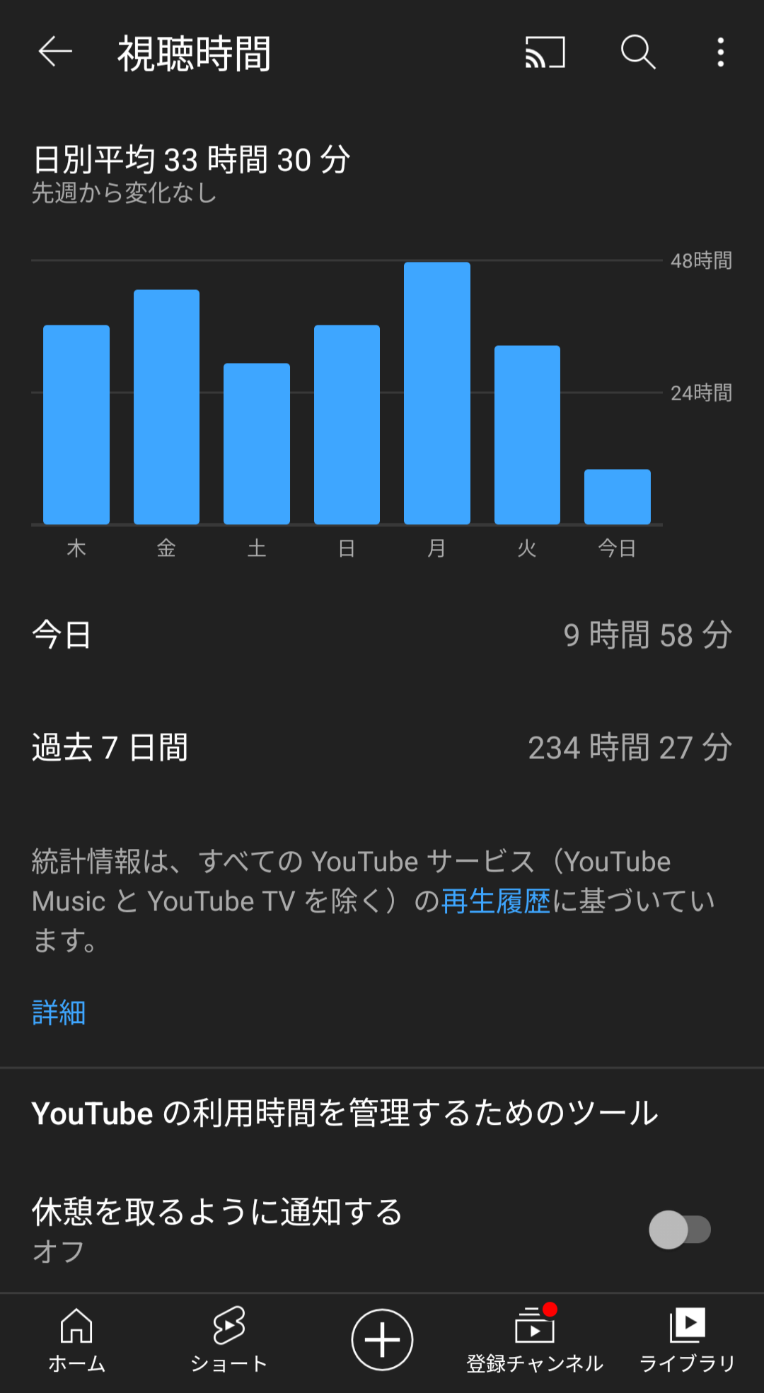 つべが平均7時間でほぼイコールホロ視聴だな
